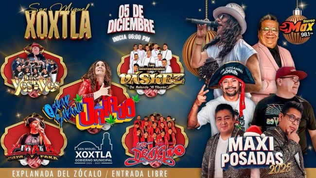 El Honorable Ayuntamiento de San Miguel Xoxtla, en conjunción con Stereo Max, invitan a todas las familias a disfrutar de la Segunda Maxi Posada 2025
