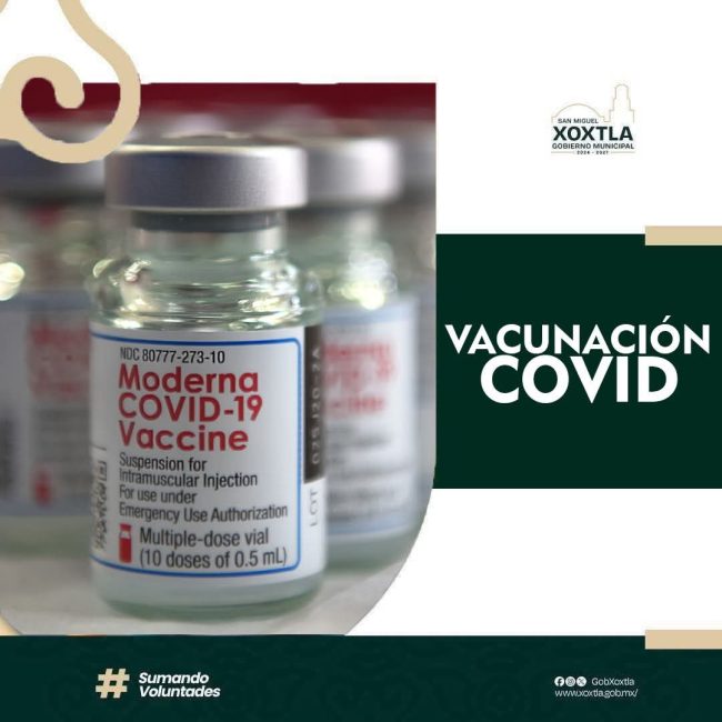 El H. Ayuntamiento de San Miguel #Xoxtla y la Presidenta Guadalupe Ortiz invitan a la ciudadanía a participar en la Jornada de Vacunación contra COVID-19, donde se aplicará dosis Moderna. 📍 Lugar: Zócalo Municipal ⏰ Horario: De 9:00 a.m. a 1:00 p.m., o hasta agotar las 200 dosis disponibles La vacunación es gratuita y una…