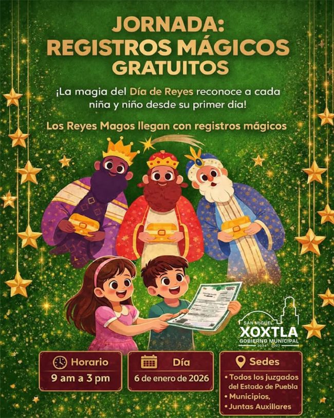 La Presidenta Municipal Guadalupe Ortiz, en compañía del H. Ayuntamiento de San Miguel #Xoxtla, invita con mucho cariño a todas las niñas y niños a celebrar juntos el Festival de Reyes. 🎉🎁 📅 6 de enero ⏰ 3:30 p.m. 📍 Zócalo de San Miguel Xoxtla 🎶 Habrá música, 🍩 rosca de reyes, 🎈 concursos, 🎁…