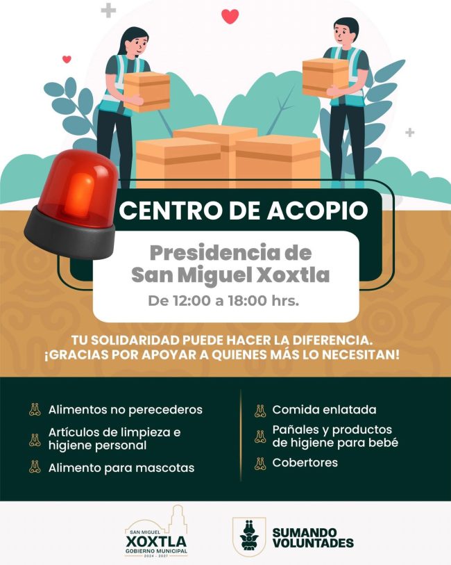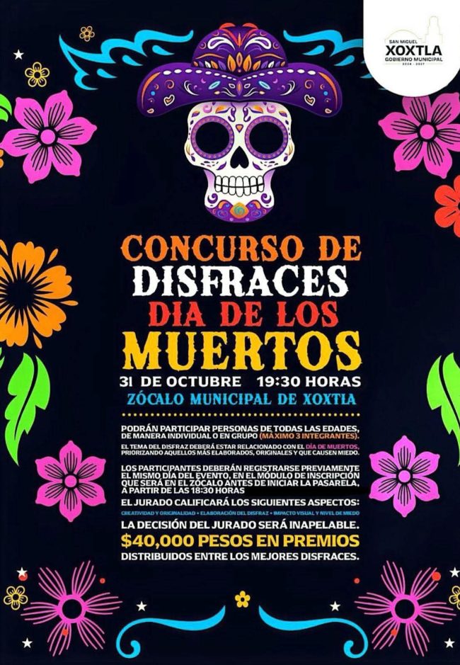 En el marco de las festividades de Día de Muertos, el H. Ayuntamiento de San Miguel Xoxtla que preside nuestra presidenta municipal la Mtra. Guadalupe Ortiz, a través de la Dirección de Protección Civil Municipal, hace un llamado a todas las familias xoxtlenses a colocar sus ofrendas con responsabilidad y precaución, con el objetivo de…
